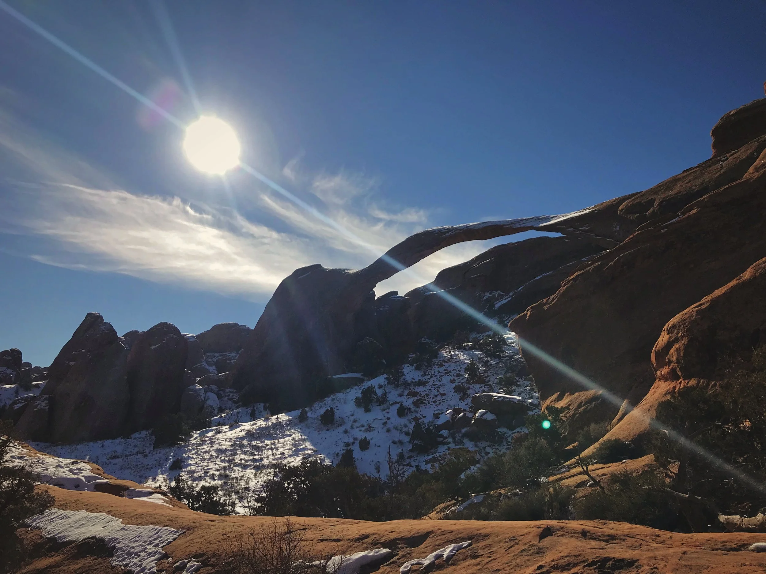 For more on visiting Arches National Park in winter and our recommendations for free campsites, check out our blog posts “A Vanlife Guide to Arches National Park” and “Hiking to Delicate Arch in Winter.”