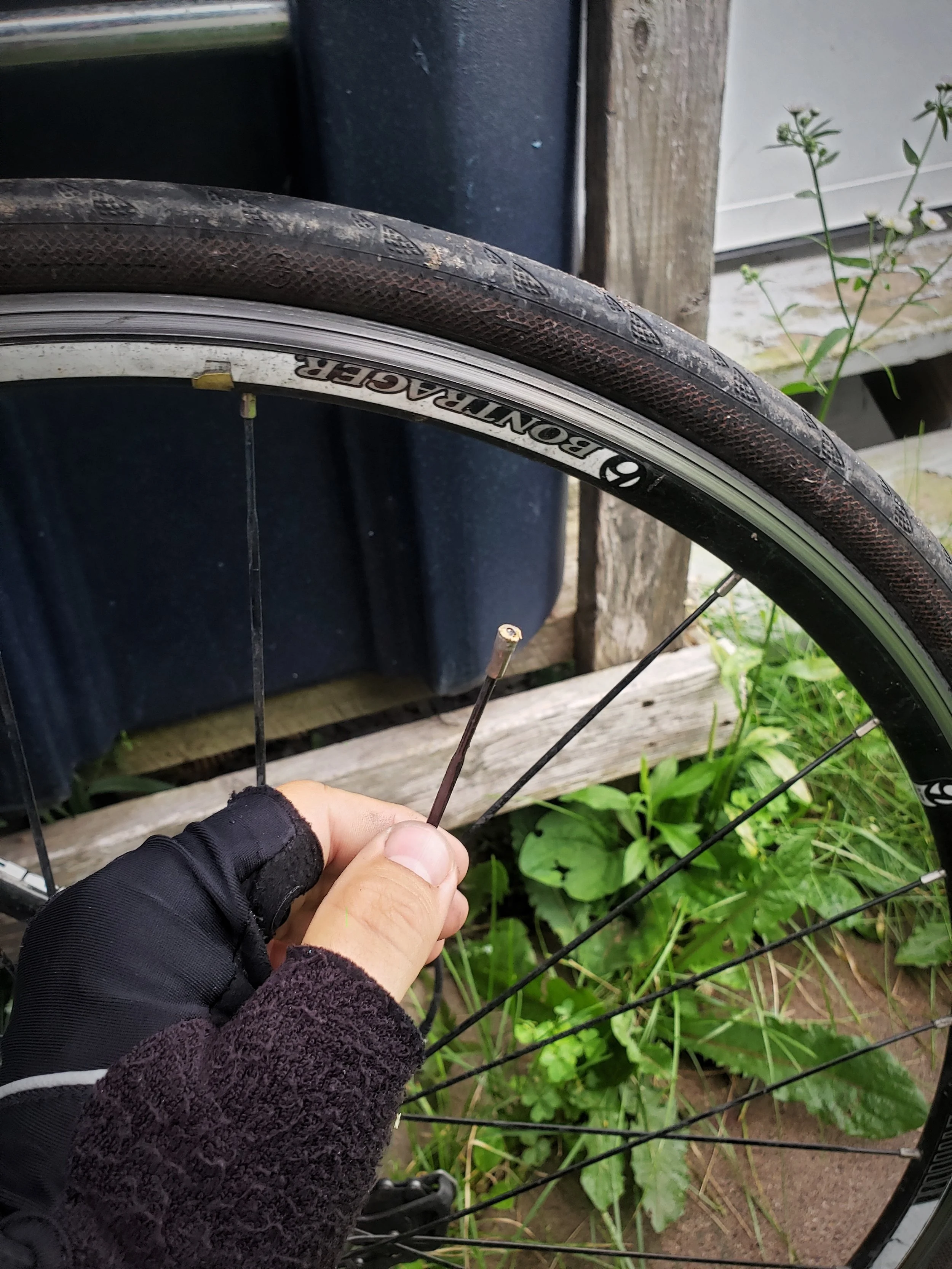 Ian broke a spoke on his rear wheel in the final mile of our bike tour.